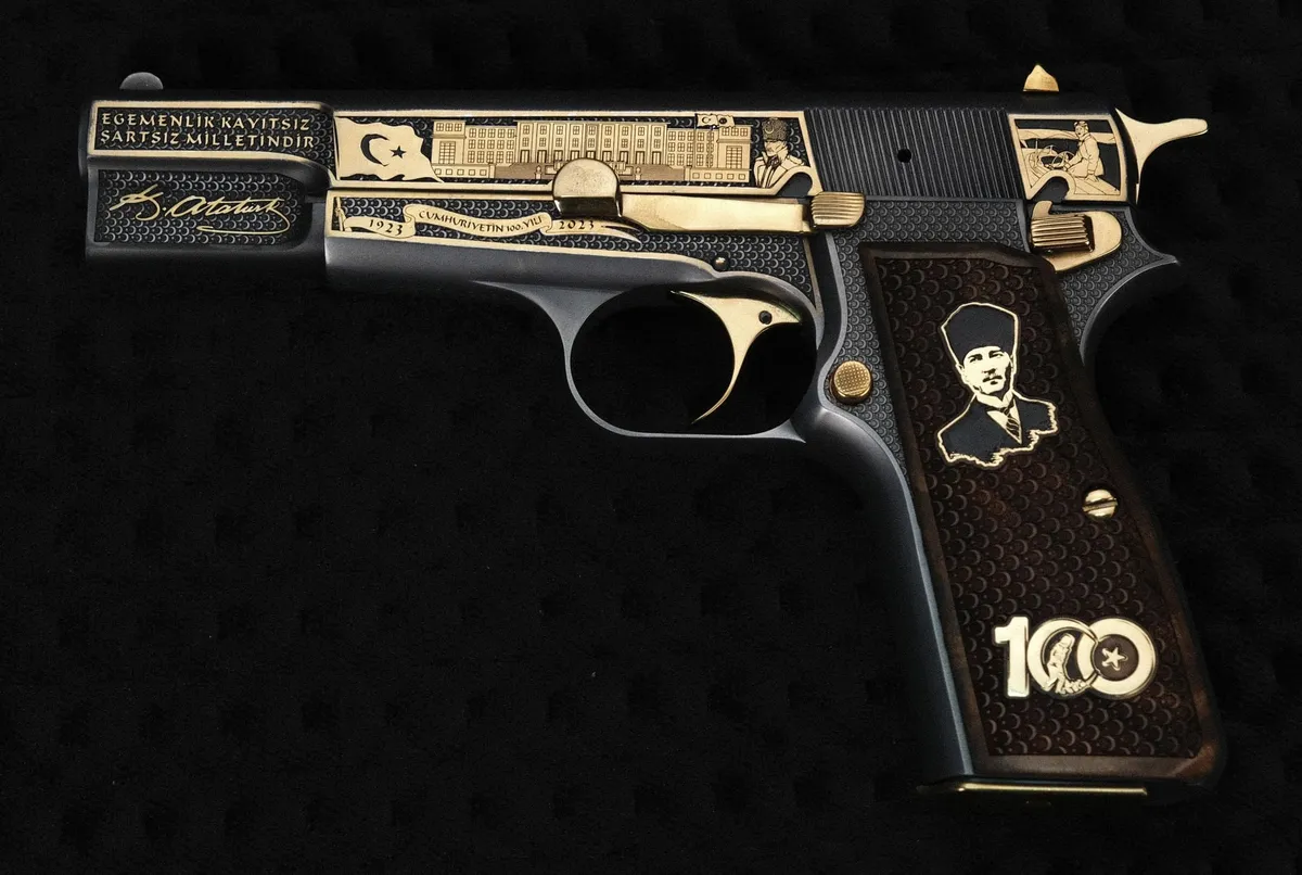 Browning FN M1910 7,65 – Wild Life Gravür Çalışması – Koyu Füme ve Parlak Sarı Titanyum Kaplama İncele